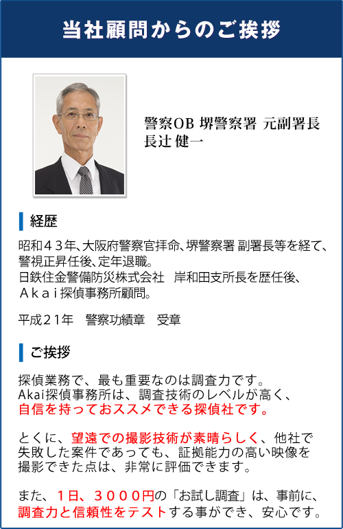 - 所有機材(暗視及び望遠のカメラ等)の質、量が他の興信所の平均を超越している